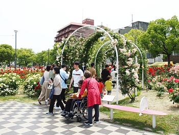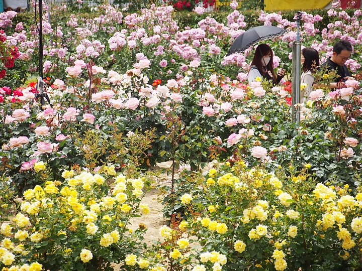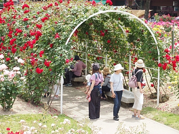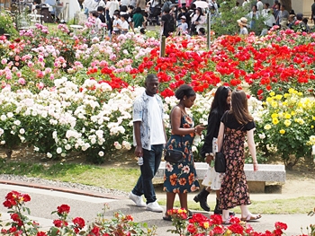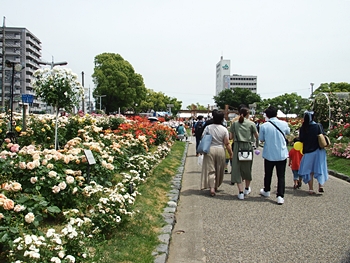 バラ公園に到着しますと、バラ祭り≠ナすからさすがに大勢の方々が…