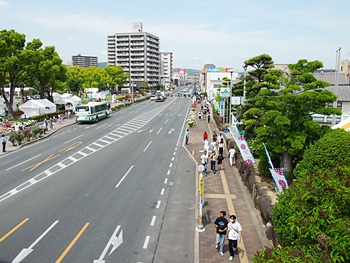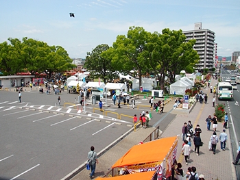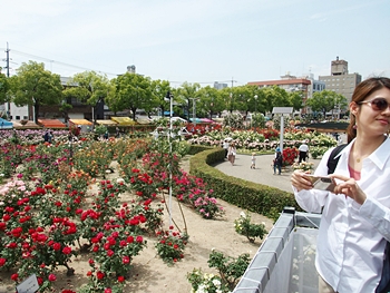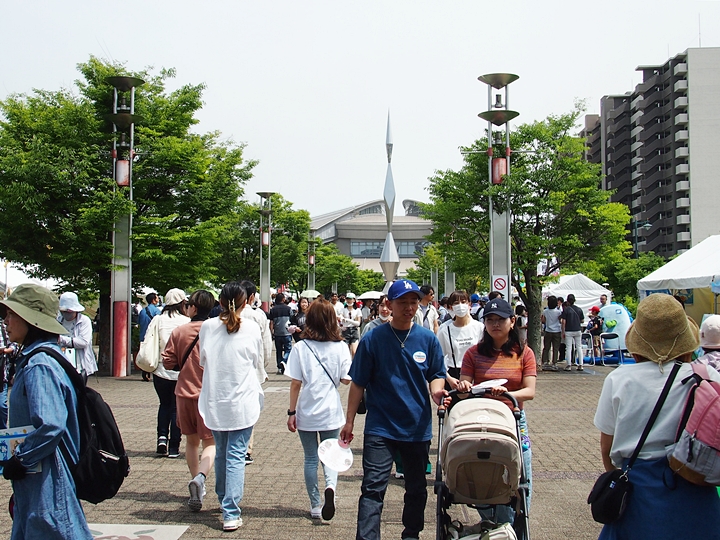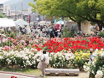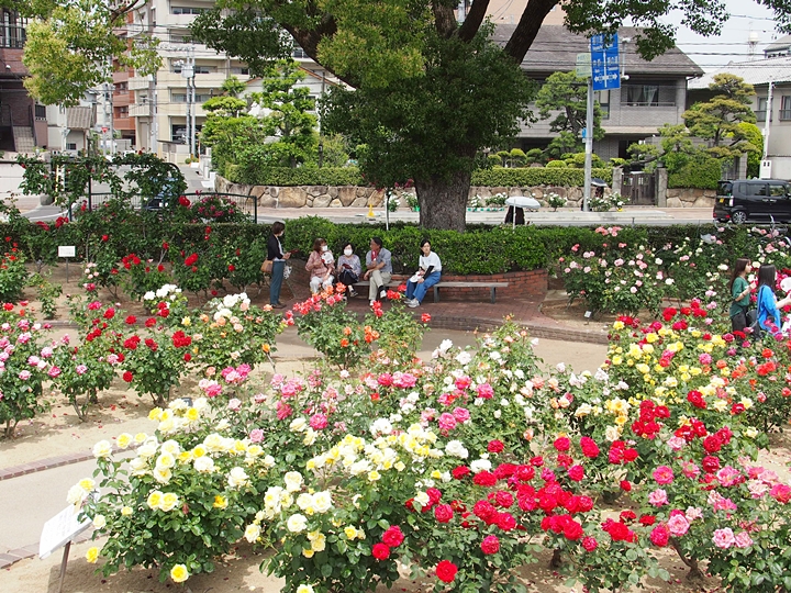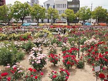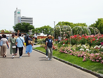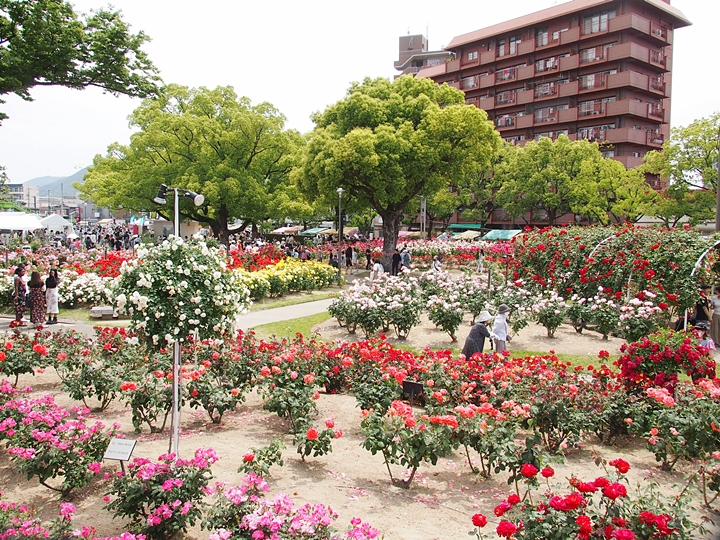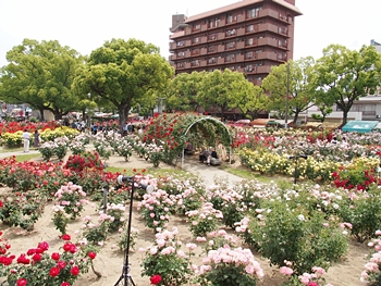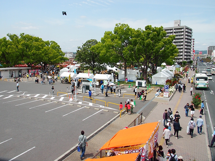 この方達を横目にJA福山農協会館の広場を横断し緑町公園に向かいます。福山ばら祭りのメイン会場ですから、ここが一番の人出かも(^.-)☆
