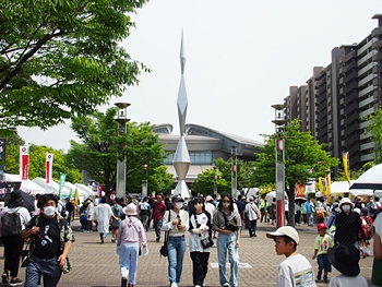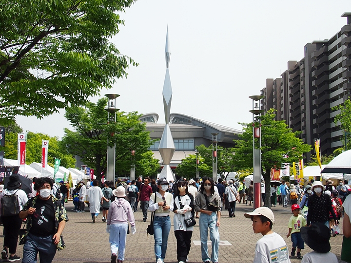 各種出店コーナー・特産品コーナーには露店がズラッと並び、結構な賑わいです。これを横目に、ローズアリーナ方向へ向かいます。