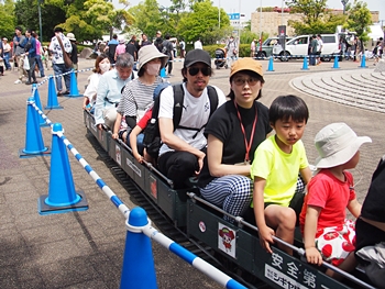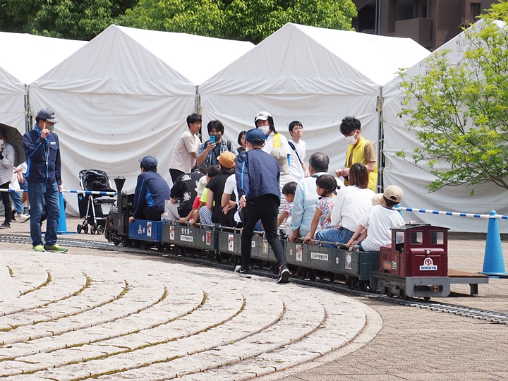 ローズアリーナ前の広場では、ミニ機関車が…チビッコ達と一緒にご家族も乗車で、大変楽しそう(^_^)v