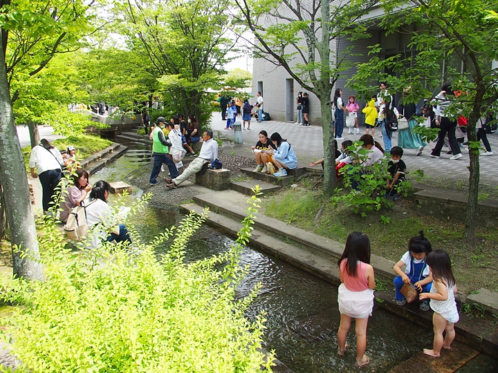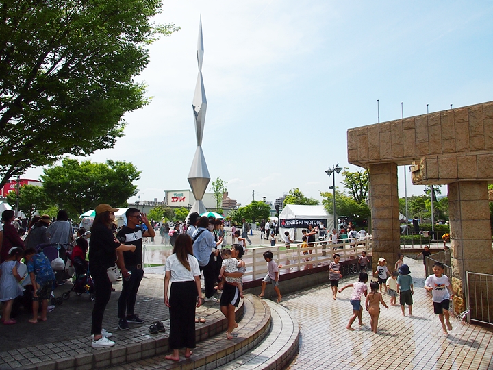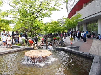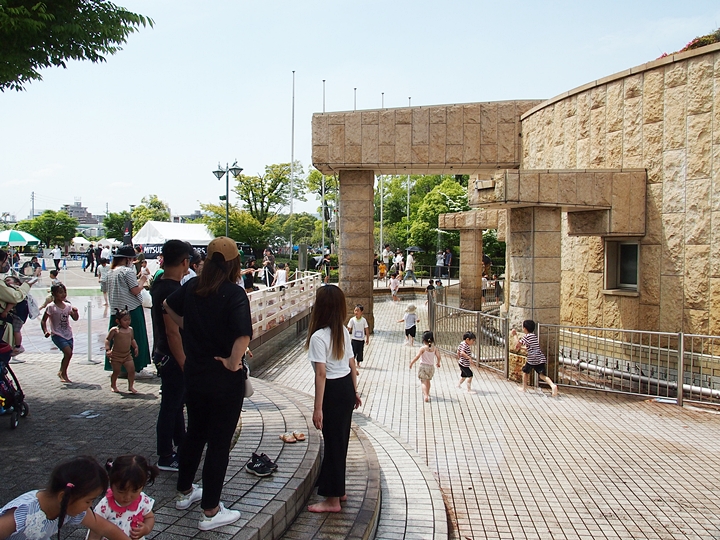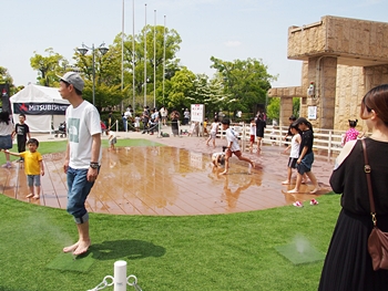 親水広場では、チビッコ達が楽しそうに水遊び。多少汗ばむ感じもありますから、水遊びは涼しくてさぞ楽しい事でしょうネ(^.-)☆