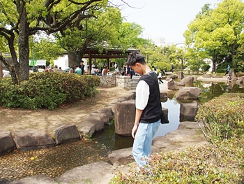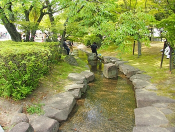 ばらのステージ≠フ裏側を廻るように流れて行きますせせらぎでも、同じようにチビッコ達がせせらぎの中へ(^_^)v