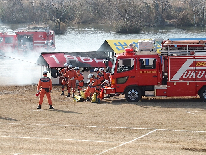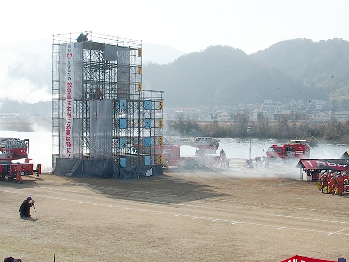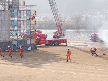 毎回、出初め式を拝見しておりまして、何度眼にしましても面白いのが、この隊員の皆様の人力での救出作戦かも分かりません。
