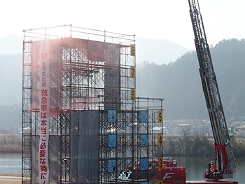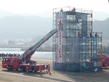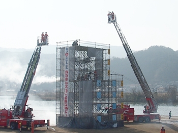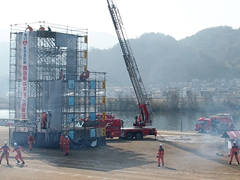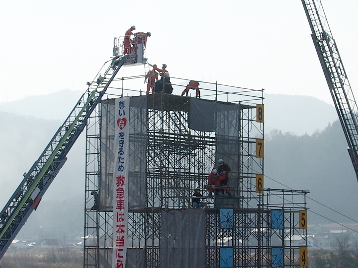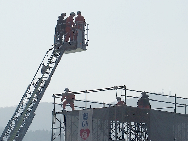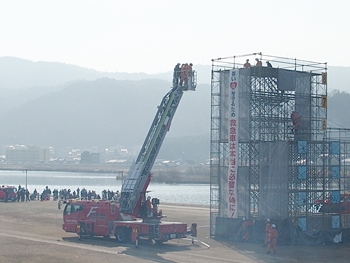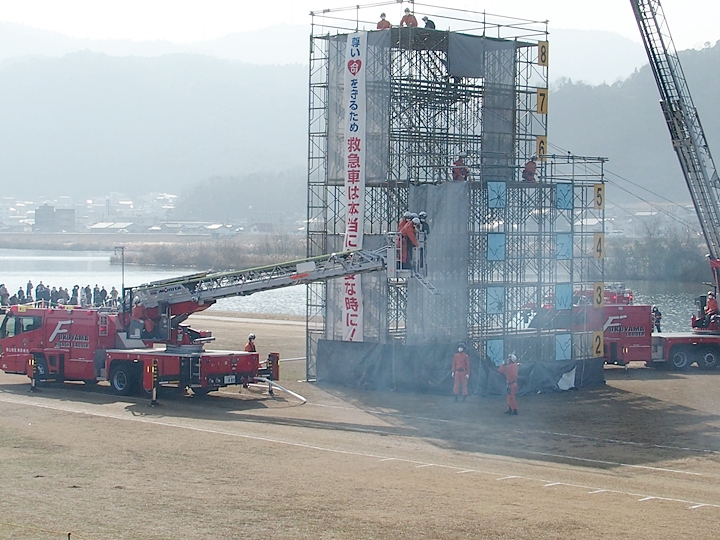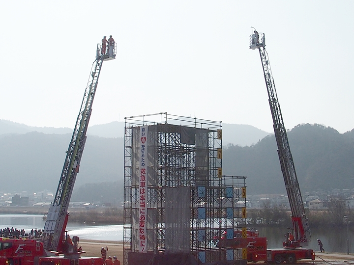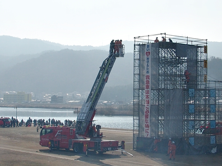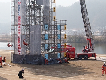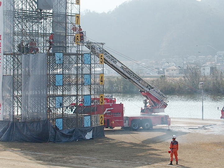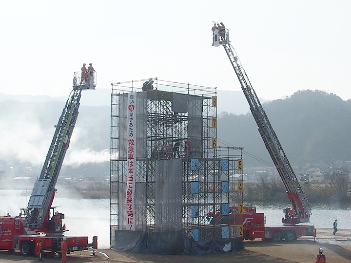 こぅした中高層建物の火災の場合、逃げ遅れました方達をはしご車で救出するケースもあるでしょうし、人力での救出場面も再々あるものと思います。