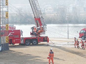 こんな救出作戦を、正式には何と言うのでしょうねぇ〜消防関連の言葉でロープワーク≠タマに耳にしますけど、これは、ロープを結ぶ作業と言う意味なのかも…