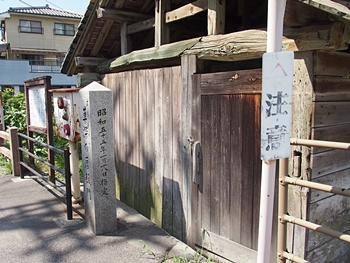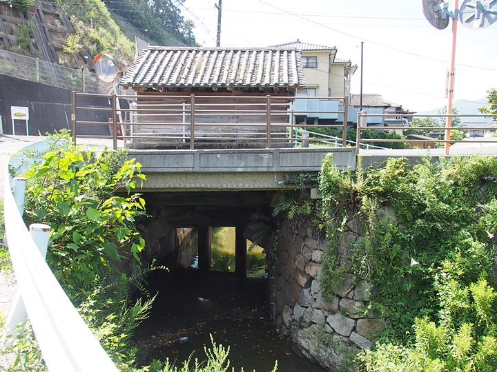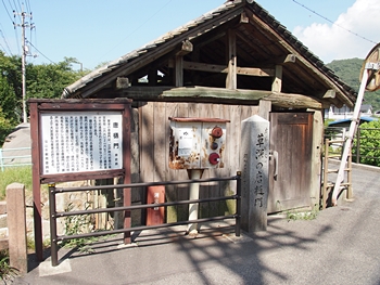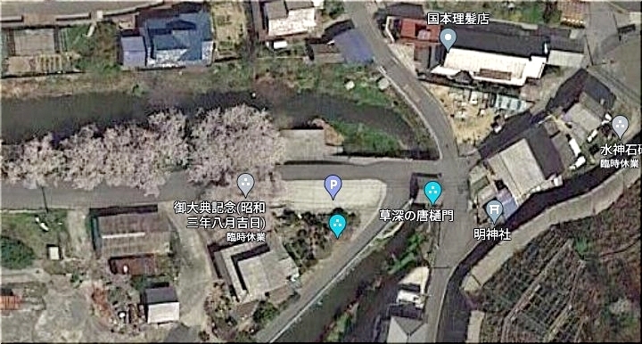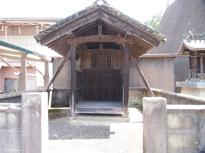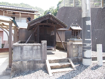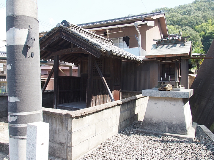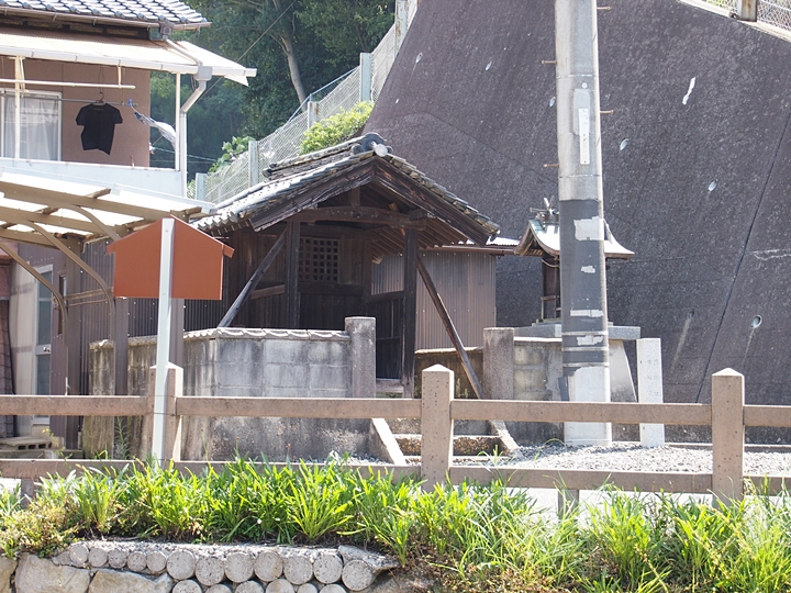 草深の唐樋門≠フ傍には辻堂が存在しますけど、「樋之上の辻堂(お大師)」ですネ。そして、その右側の小さな祠は「明神社」。