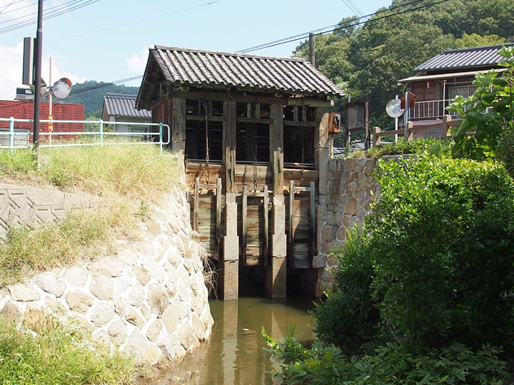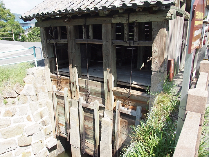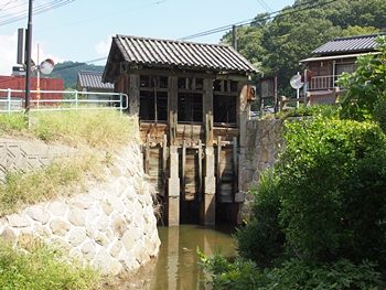堤防の東側の一角に、がっしりと石垣を積み上げ、水路に石柱や大きな木の柱によって樋門を組み上げ、巻きろくろによって用水を調整した施設で干拓史の研究上、貴重な産業遺跡である。