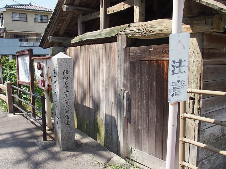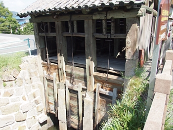 海側から見ると、樋門の全容がよくわかる。堂内部に取り付けられた滑車により、三枚の門扉が上下に動くようになっている。満ち潮時はこの門を堅く閉ざし、干拓地を守り、引き潮になれば開放して悪水を逃した。