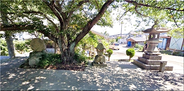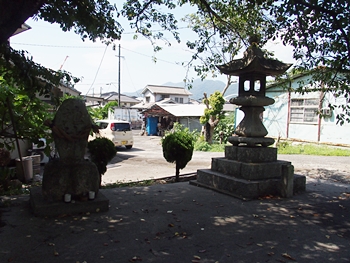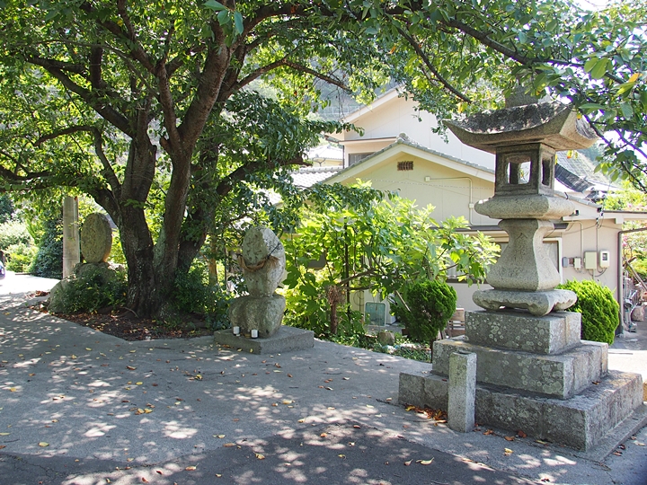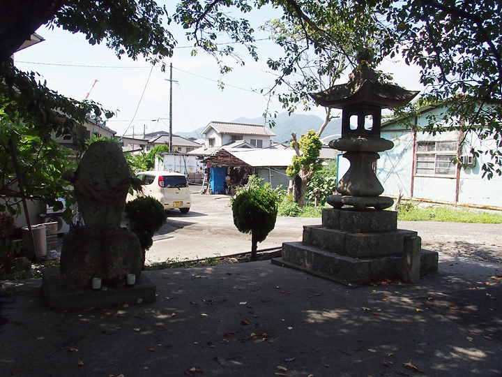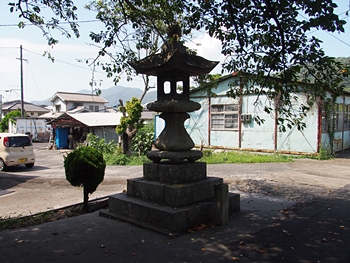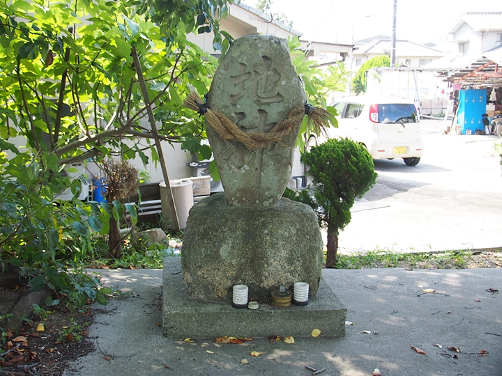 駐車スペースの脇には、手前から「御大典記念(昭和三年八月吉日)」「地神」「常夜燈」が…