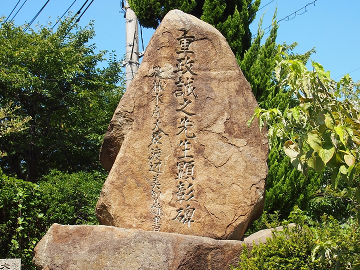 到着しますと、まず眼に入りますのが立派な石碑。駐車スペースは背面側になりますので、正面に廻りますと『重政誠之先生顕彰碑(農林水産大臣 渡辺美智雄書)』でありました。