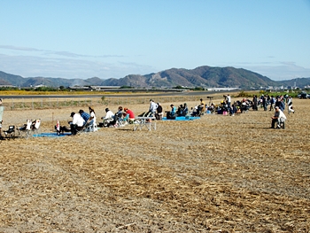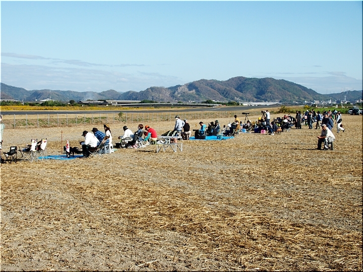 航空ショーのスタートは、A.M.10:00からだと言いますのに、早々と、滑走路に向かってズラッとイスを並べて待機の方々が(^_^)