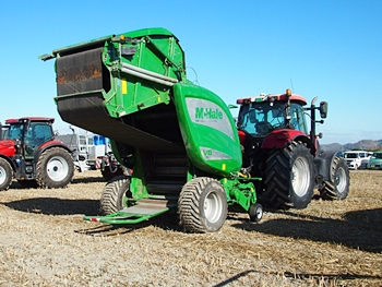 ★ロールベーラー:刈り取って寄せ集めた干し草を巻き取って固め、牧草ロールを作ります。できたロールは機会の後ろからコロコロと出てきます。