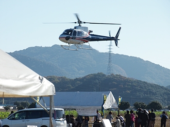 ヘリコプター遊覧飛行の方は、A.M.9:00から始まっていますようで、テントには順番待ちの方々が結構おられます。ご家族連れには、わずかな時間の遊覧飛行も楽しいものと思います。
