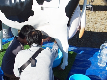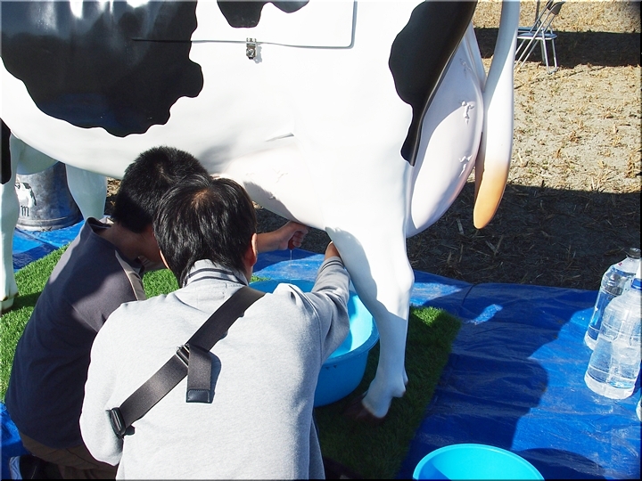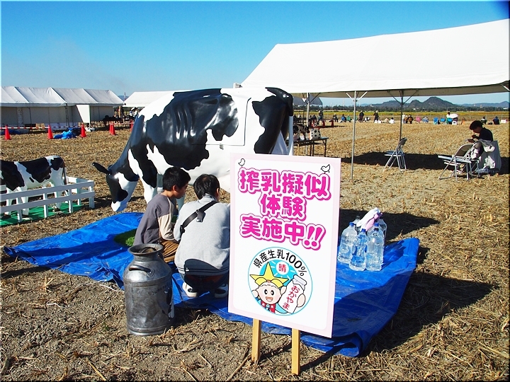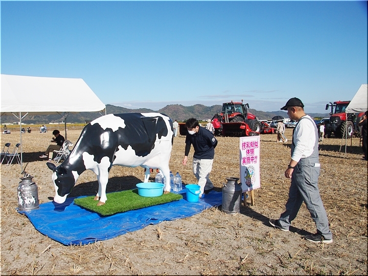 これらのトラクターが展示されています付近では、『搾乳疑似体験実施中!!』の表示板が(^-^)