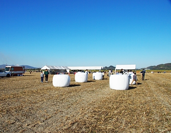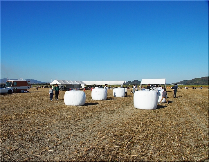それから、白いフレコンに包まれたモノが6個ばかり…これらは、牧草ロールなんでしょうネ。FLY OVER KASAOKA 2023≠フポスターには、こんな記載が…