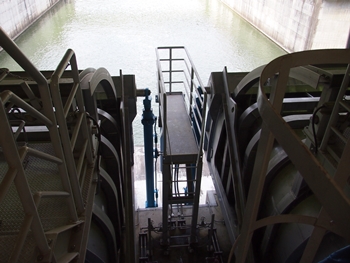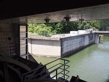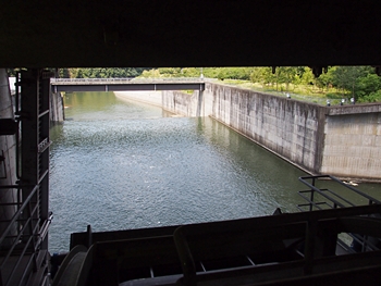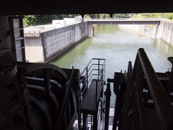 ダム内部の見学を終えますと、次は、場所を移動し、11:00からのハイヅカ湖上巡視体験≠ナす。