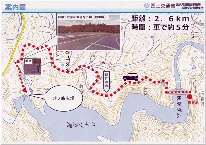 灰塚ダムまでヤッて来ました道を2.6kmばかり戻りまして才ノ峠広場≠ヨと向かいます。車で約5分の所要時間でありました。