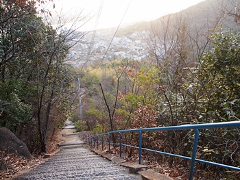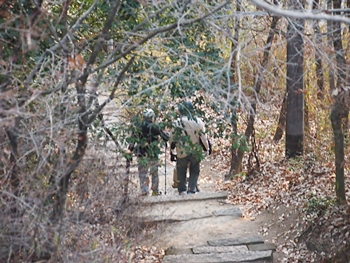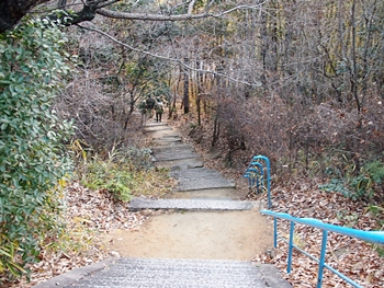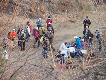往路をそのまま下りて行きますと、前方に4〜5名の皆様の話し声が…転げないようユックリした足取りで下っておられます。