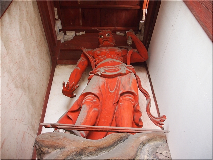 山門までヤッて来ますと、お正月ですから山門の中に入り、仁王様にご挨拶です。