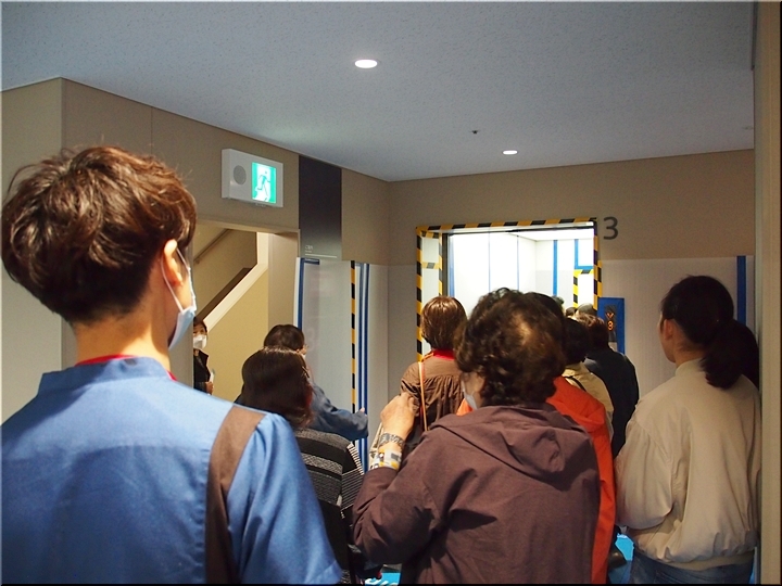 3階へ上がりますと、エレベーターの前には見学者の皆様が集中です。見学を終え、下に降りられますのでしょうねぇ〜ここでも、不思議と知った方々には遭遇がありません。