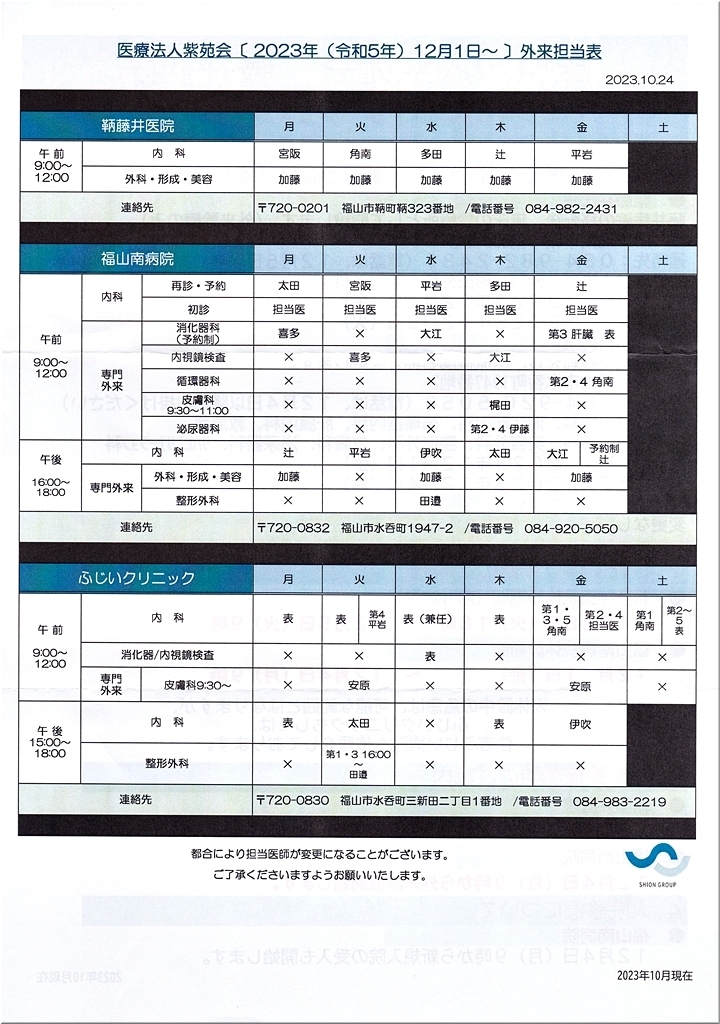 12/5(火)からは、いよいよ福山南病院の稼働で診療開始となりました。