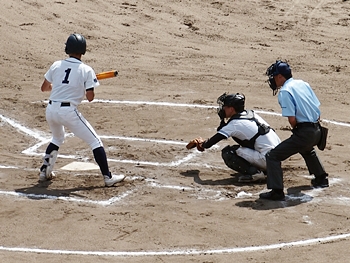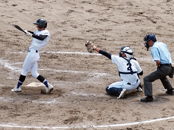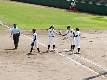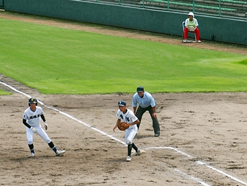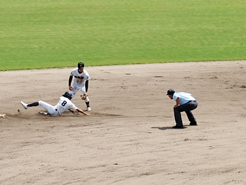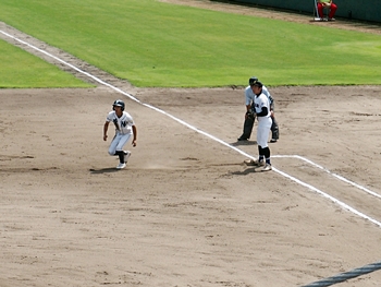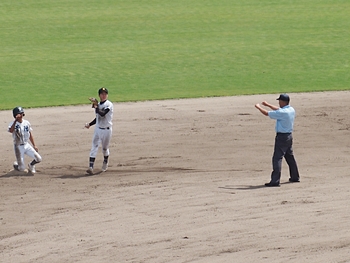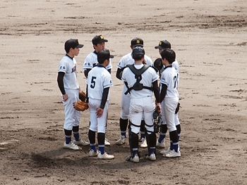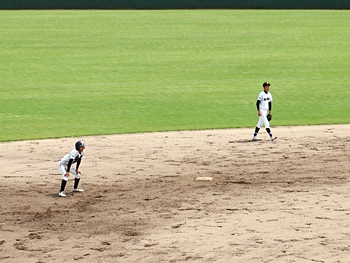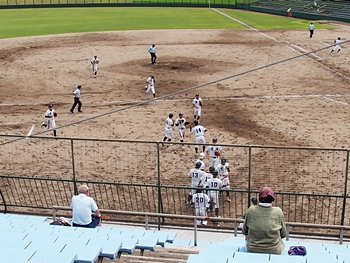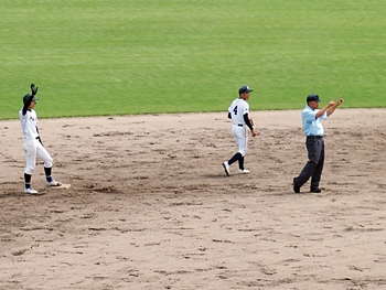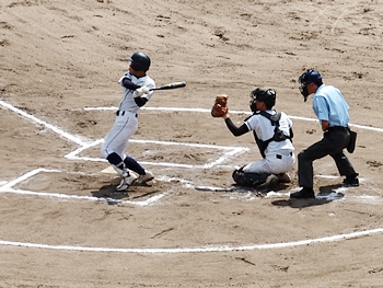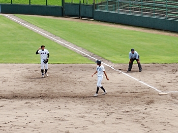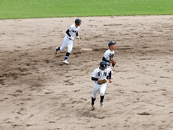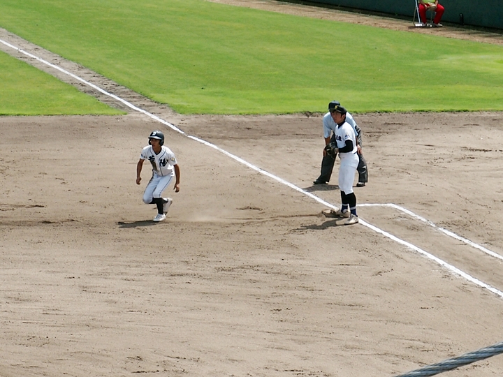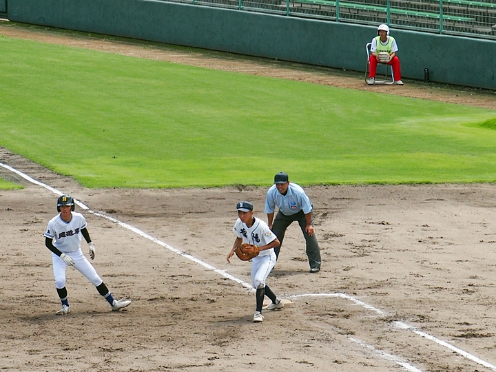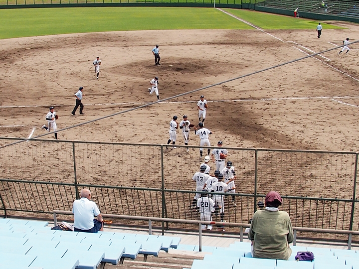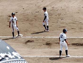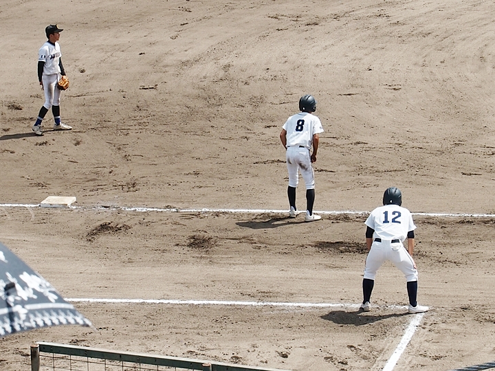 5回表の葦陽高、0アウト1、2塁と得点チャンスを迎えるが、後が続かず無得点。