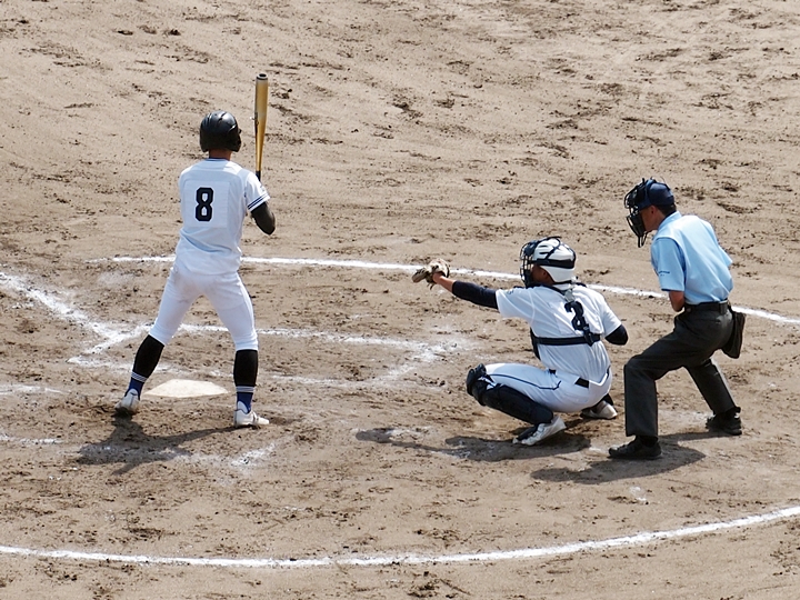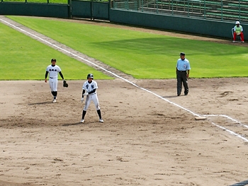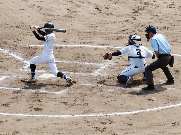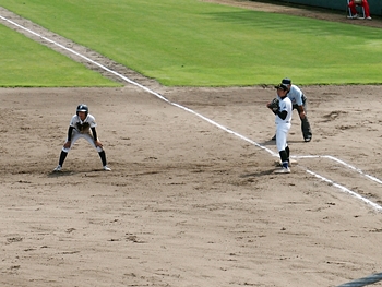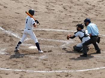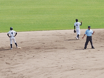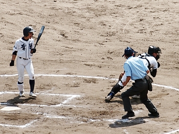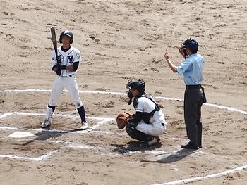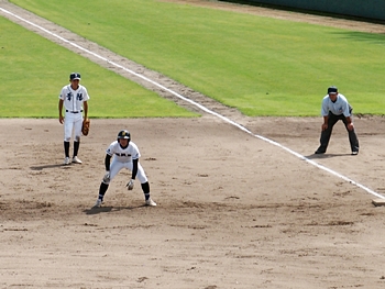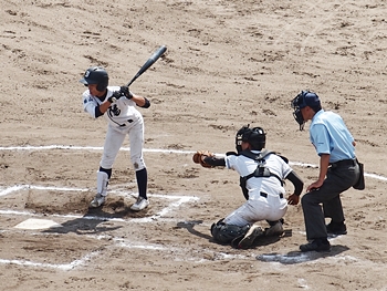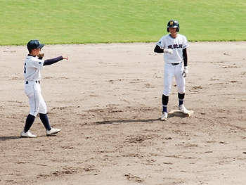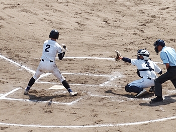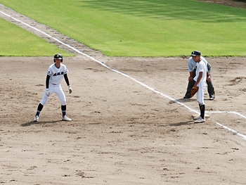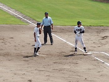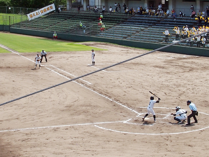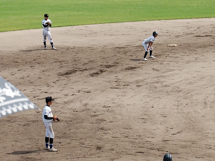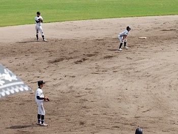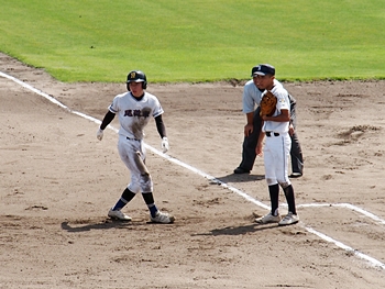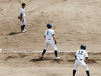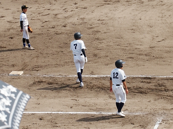 7回表の葦陽高、1塁走者を2塁へ進め、またまた得点チャンスを作りますが、後が続かず無得点。