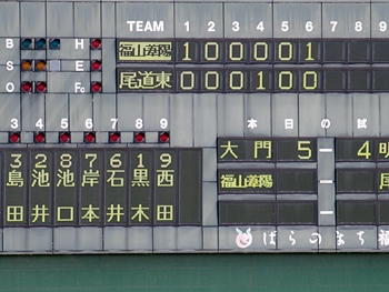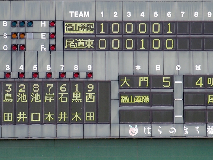 この裏の尾道東、安打で出ました走者を1、2塁に置き得点チャンスではありますけど、後が続かず無得点。「葦陽2×1尾道東」と変わりません。