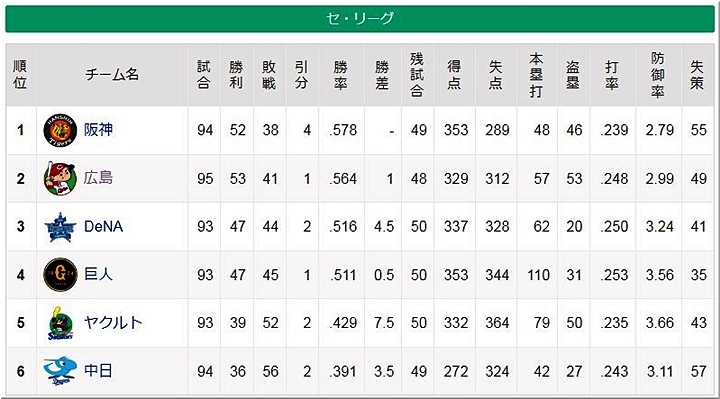 広島が連敗を3で止め、中日に敗れた首位・阪神に1差と迫った。
