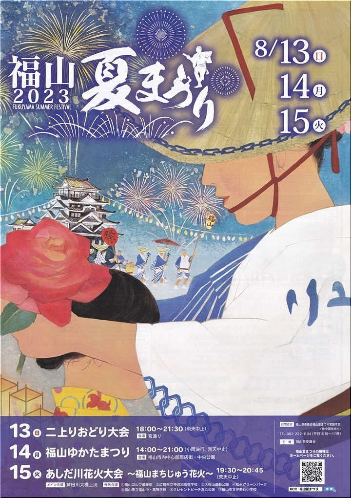 お盆も一週間後と近付いて来まして、昨日の新聞折り込みに福山夏まつり2023≠フチラシが入っておりました(^.-)☆