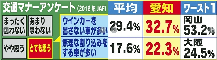 「名古屋走り」について国沢さんは「1つが突出するのではなく、全般的にマナーが悪い」としていて、3つのご当地走りが全て行われているといいます。