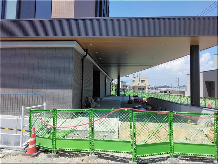 外観は、こんな感じで、ほぼ完成。中の様子は伺えませんけど、内装工事が急ピッチで進行しているものと思います。