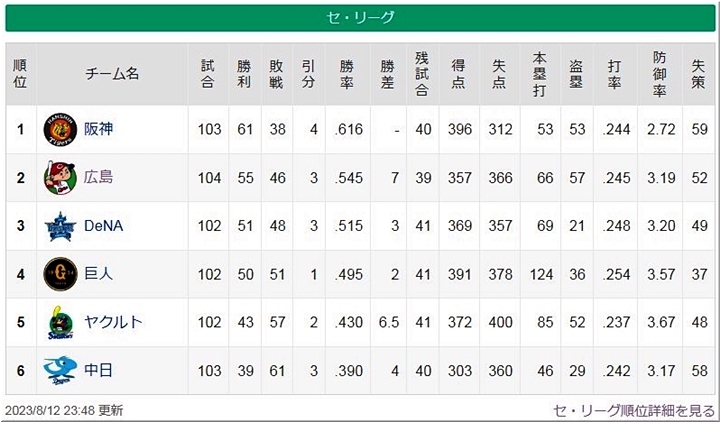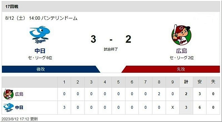 --- 2023/08/12(土) 14:00 バンテリンドーム Sportsnavi ---