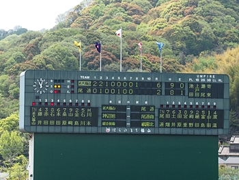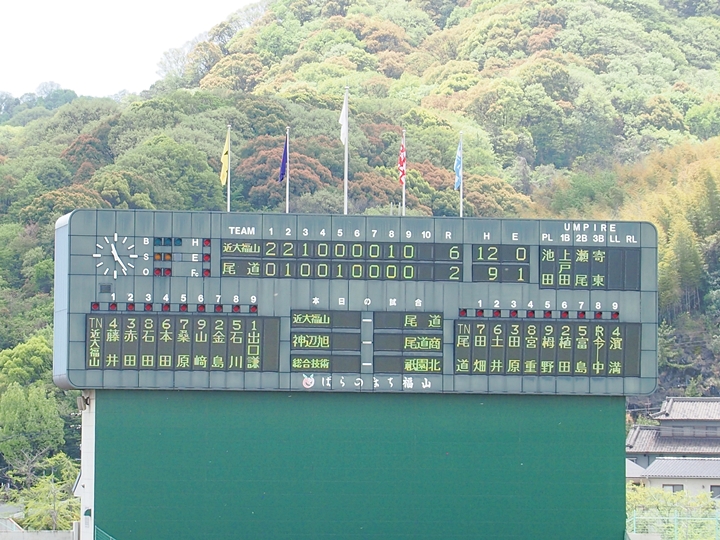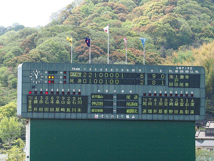8・9回の尾道高の反撃ならず、結局、無得点でゲームセット。「近大福山6×2尾道」と近大福山の勝利で2回戦に進出となりました(^.-)☆