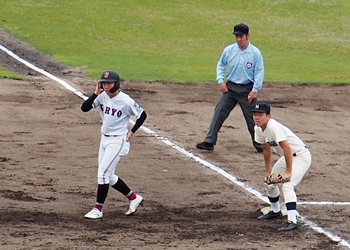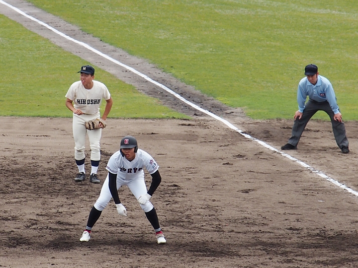 さすが4番の小林選手、まずは1点目。続いて2点目。結局、この回は3点先取の広陵高校。幸先のよいスタートです(^-^)//"