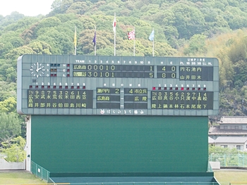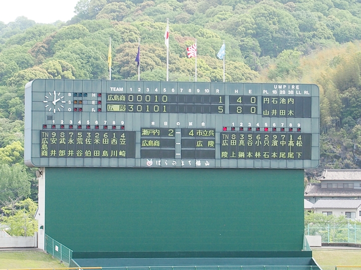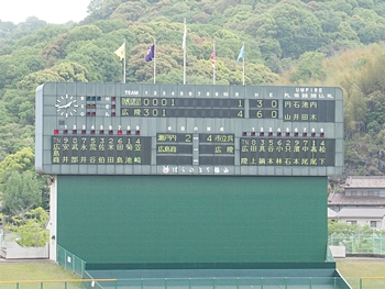広商の米田選手が1本、広陵の小林選手が2本ですから、計3本のホームラン。1試合3本のホームランが出ましたのも、福山市民球場での観戦では多分、初めて(^_^)