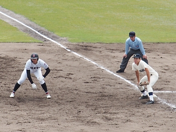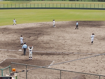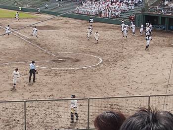 続く2回は、両チームとも無得点で、3回表も無得点の広島商業。