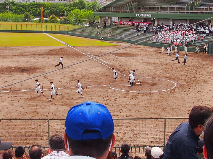 福山市民球場での高校野球観戦で、2本のホームランを打ちました選手を見ましたのは、今回が初めてかも。大変ラッキー\(^o^)/