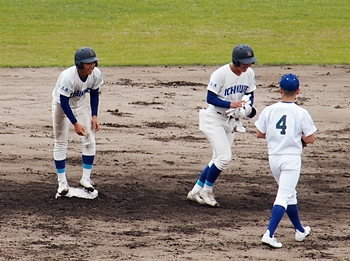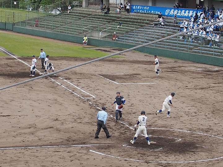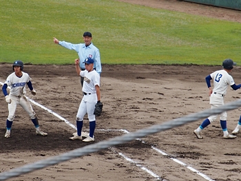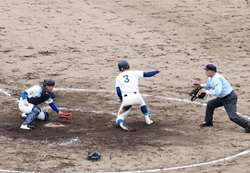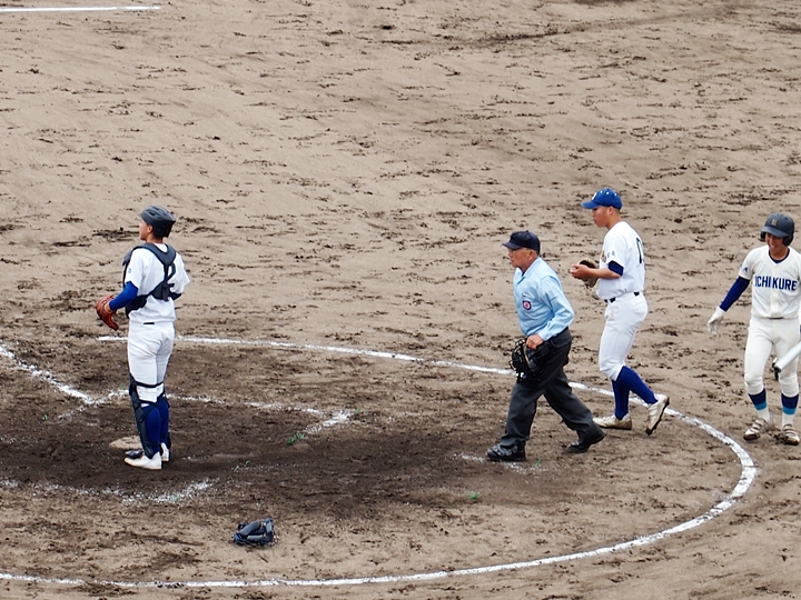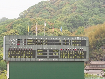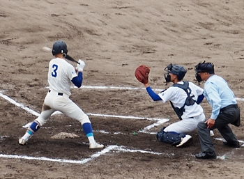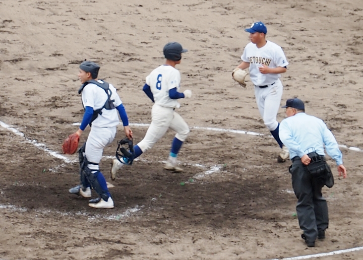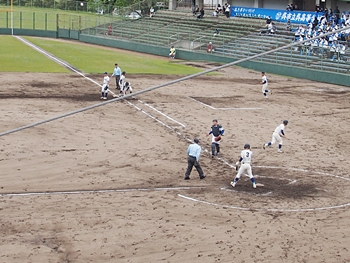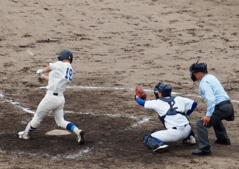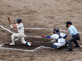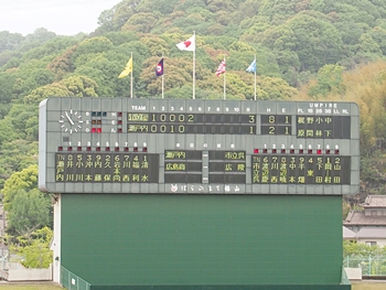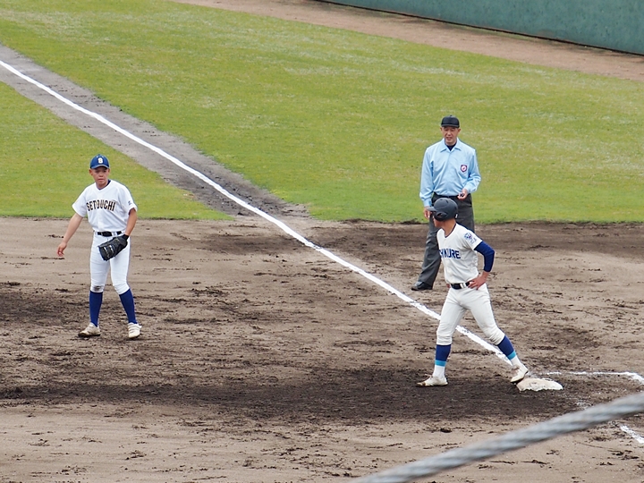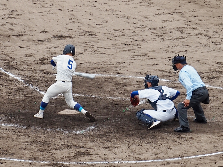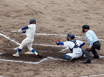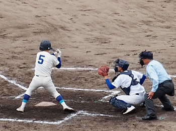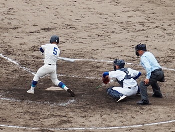 続く4回は、両チームとも無得点で、5回表の市立呉。まず、勝ち越し打の1点が入り「市立呉2×1瀬戸内」。尚、チャンスは続きます。