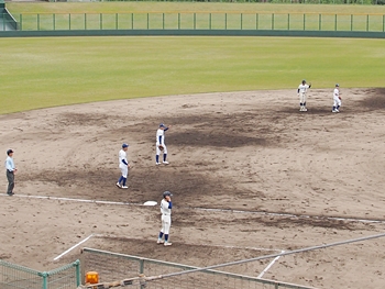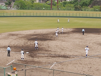 瀬戸内は、市立呉の岡村投手の攻略に少々手こずっています感も(^-^)岡村投手…仲々イィ投手のようであります(^-^)//"