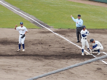 結局、5回表は2点追加で「市立呉3×1瀬戸内」と2点リードの市立呉。以降は、6回裏まで両チーム共チャンスはあるのですけど得点には?がりません。