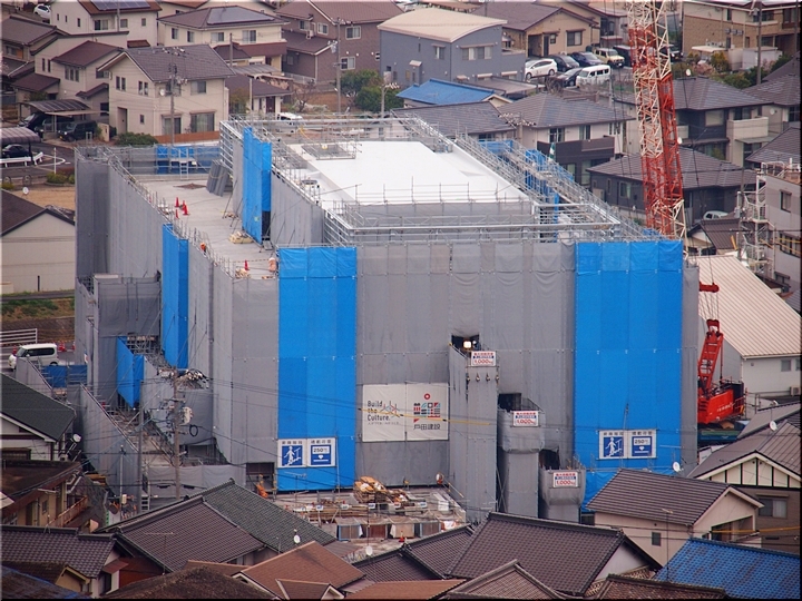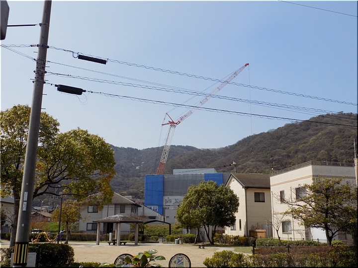 相変わらず藤井病院建設現場で、クレーンが忙しそうに稼働です。