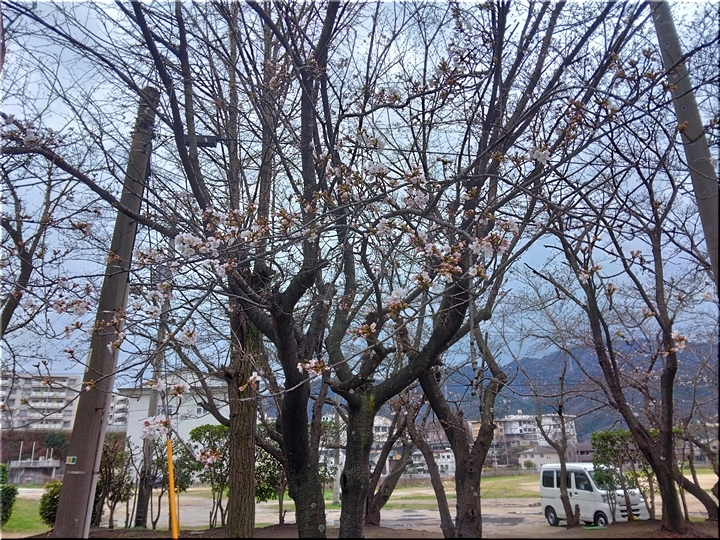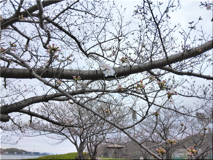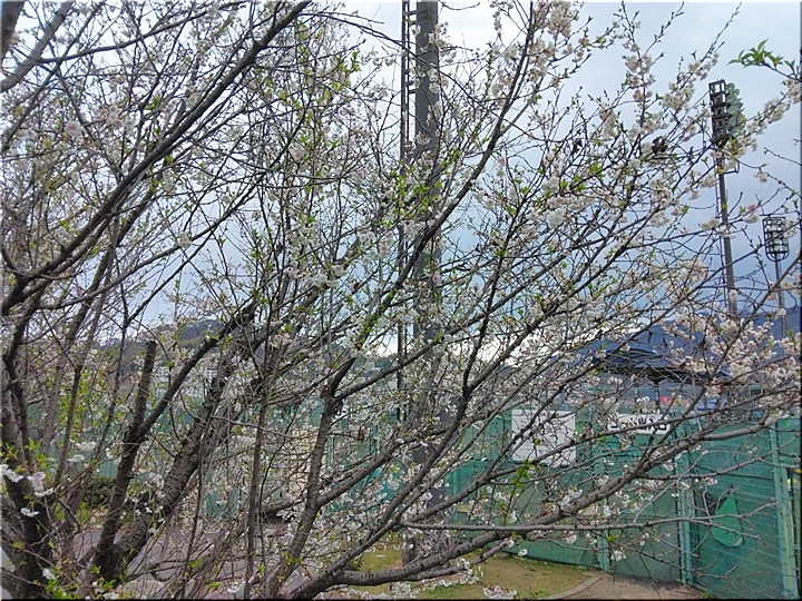 市民球場と多目的広場の間にもサクラが存在しますけど、ここでは随分開花も進んでおりまして、早や三分咲き…と言ったところでありました(^-^)//"