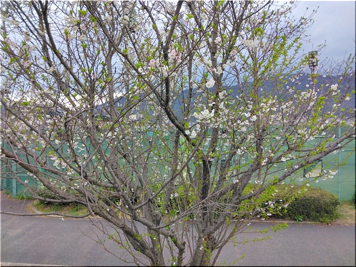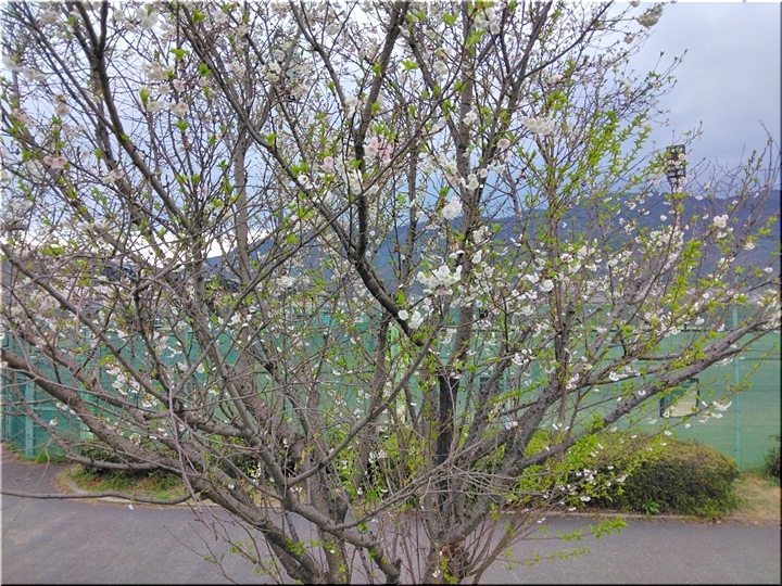 そして、テニスコート横のジュウガツザクラに近付きますと、ほぼ満開状態でありました。昨年の10月に続いて二度目の満開と言ったところでしょうか…