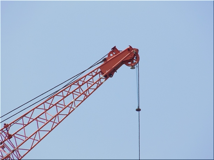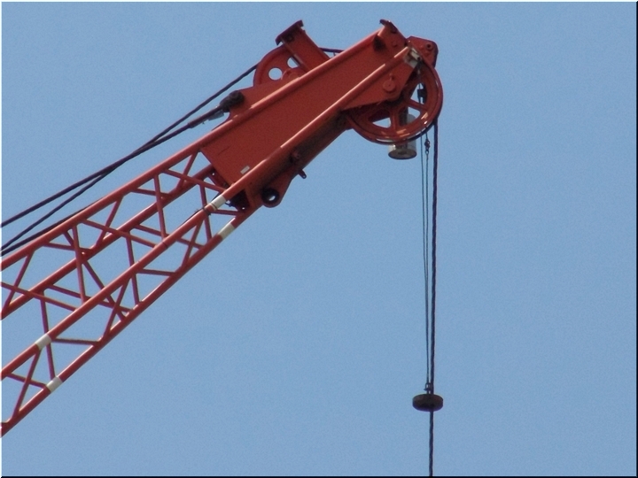 こんなクレーンはラフテレーンクレーン≠ニ言うのでしょうけど、その様子に眼を向けておりまして、オペレーターの操縦室と吊荷の場所は、建物の両側で、建物に遮断されオペレーターには見えないのですけど、実にピンポイントでクレーン操作をしておられます。クレーンの何処かに吊荷監視カメラが設置されているのでしょうけど…