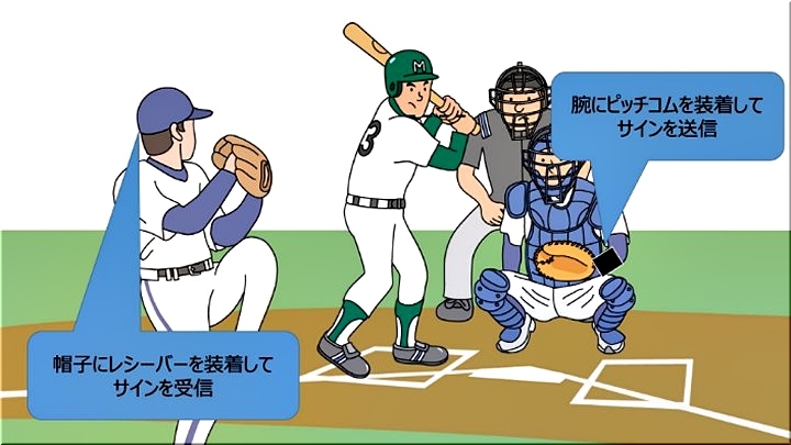 今回、許可されたピッチコムとは、キャチャー(捕手)からピッチャー(投手)に対して無線で信号を送信するウェアラブルデバイス。捕手は腕にリモコンを装着し、9個のボタンで球種やコースをピッチャーに送信。ピッチャーは帽子の中のレシーバーにてサインを受信します。また、最大3人までの野手(通常はセカンドとショート、センター)も、サインを受信することも可能。