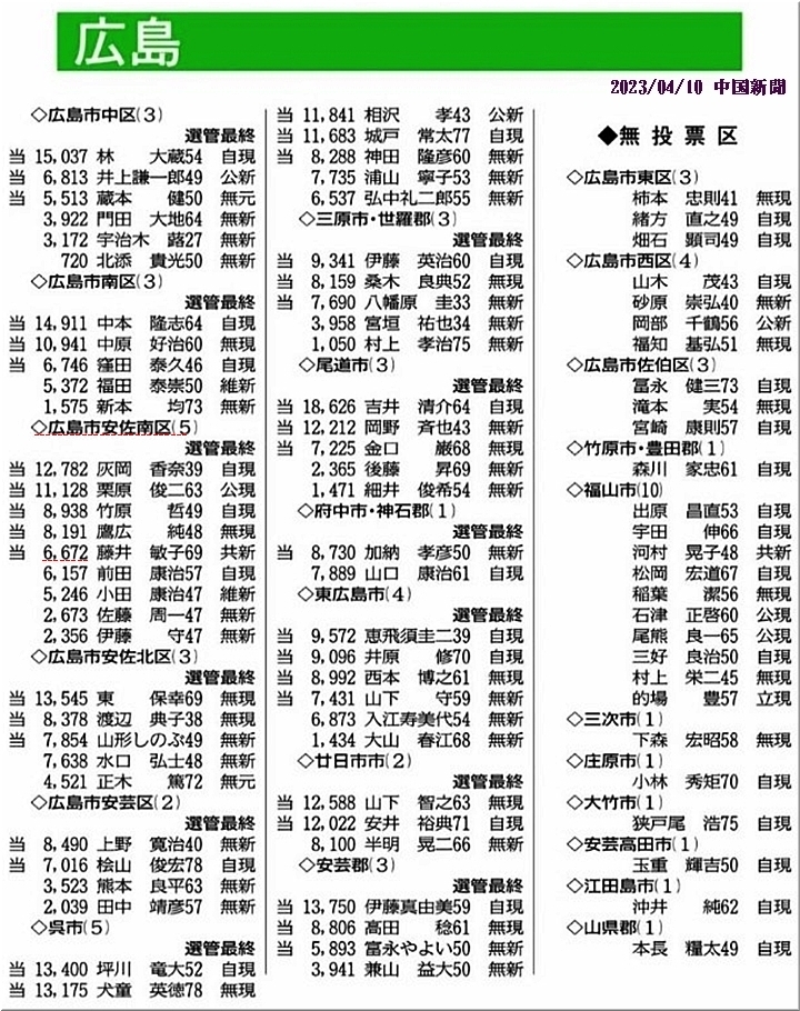 ところで話しは変わりますけど、福山市選挙区は無投票でしたけど、昨日・日曜日は広島県議選の投票日でありました。