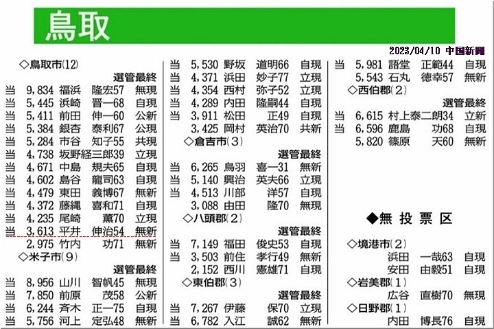 先日の中国地方県議選で、珍しい話題が朝刊紙上に…