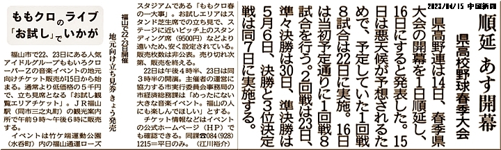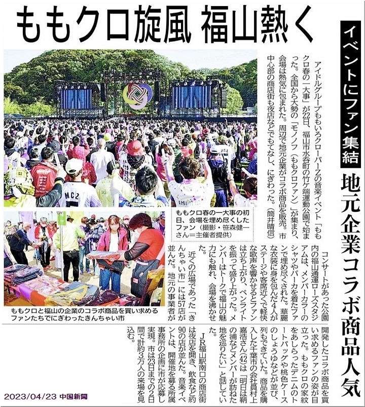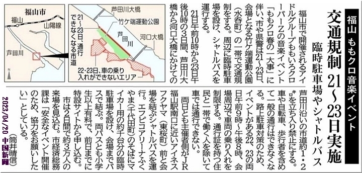 本日の朝刊にも、また、ももクロ音楽イベント開催に伴う4/21〜4/23間の交通規制の記事掲載が…