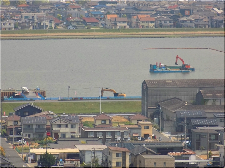 「四時半頃、ウォーキングで箕島側の土手を歩いたら、歩道沿いに福山ナンバーでない車がズラッと並び、皆さん、対岸の陸上競技場に眼を向けていた。結構、よく見えた(^-^)」と…